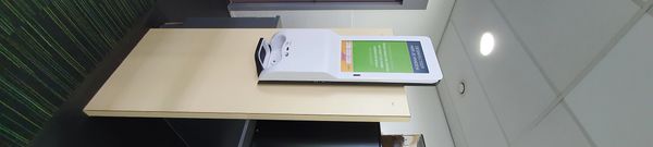 Bij binnenkomst van het gemeentehuis staat een desinfectie kiosk om het de bezoeker mogelijk te maken de handen te desinfecteren. Op het beeldscherm worden instructies gegeven rondom het bezoek. Deze is ondersteund met geluid.